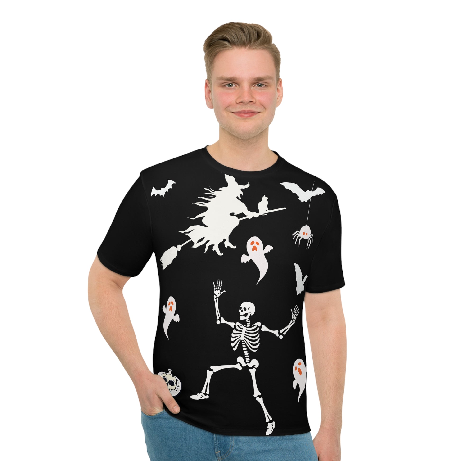 Embrace the playful spirit of Halloween with this vibrant Men's Loose T-shirt. Featuring a fun and festive design of skeletons, ghosts, and bats, this T-shirt is perfect for celebrating spooky season in style. The light fabric ensures comfort for all-day wear, whether you’re hosting a Halloween party or enjoying a casual outing with friends. It’s an ideal choice for those who love to showcase their festive spirit while staying comfortable. Great for both men and women, this T-shirt makes a fantastic gift for Halloween enthusiasts, party-goers, or anyone who enjoys a bit of fun in their wardrobe. Wear it during Halloween festivities, themed events, or laid-back gatherings, and bring a touch of whimsy to your celebrations!
