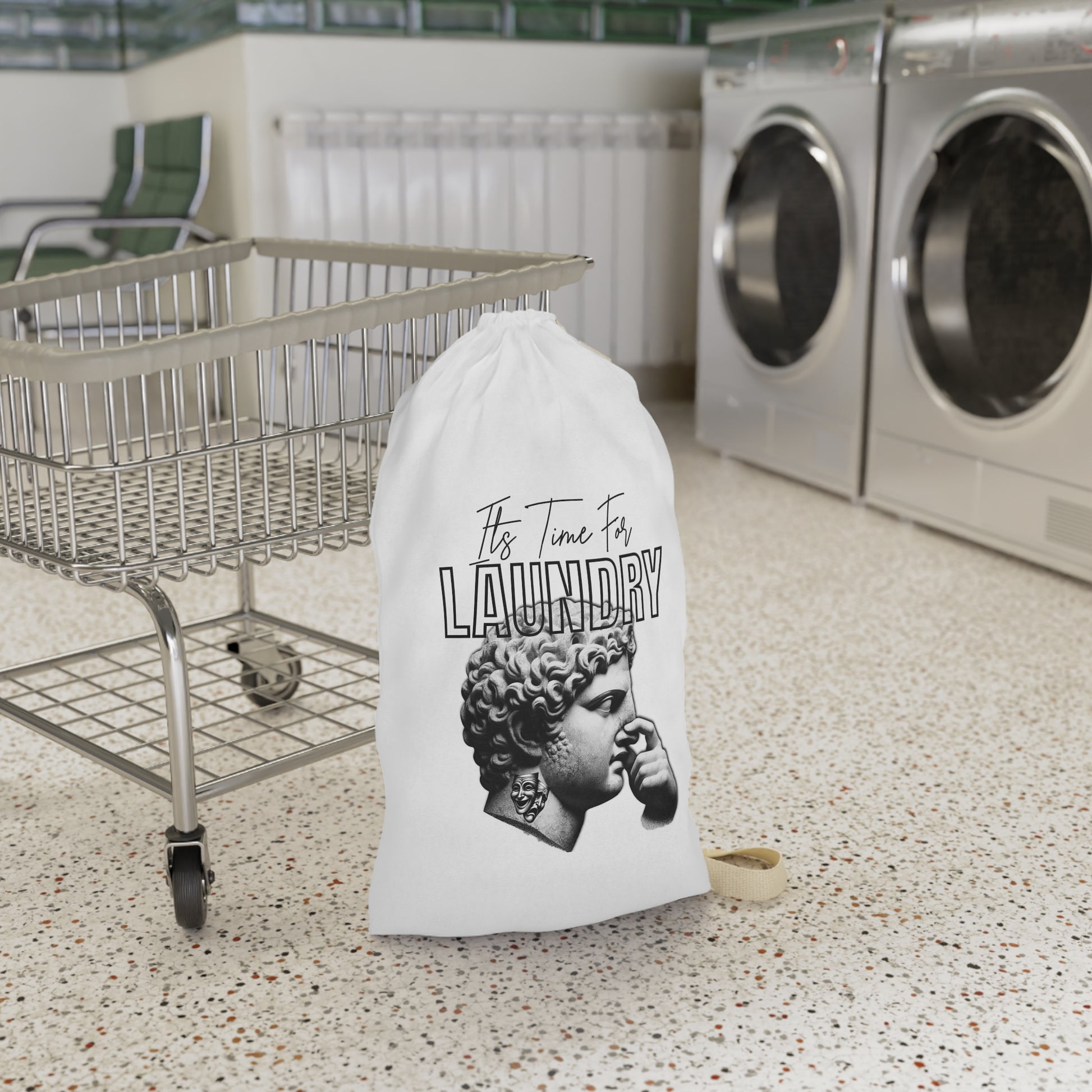 Vintage Style Laundry Bag with 'It's Time For Laundry' Design. This laundry bag brings a touch of nostalgia and elegance to your laundry routine. Perfect for those who appreciate vintage aesthetics and want to add a stylish touch to their laundry room. Ideal for households celebrating the joy of laundry day.